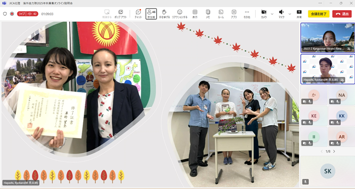 JICA北陸としては今回初めてオンライン募集説明会を開催し、北陸3県以外の方々もたくさんお話を聞きに来てくださいました。「キルギス⇔北陸⇔全国」をリアルタイムでつなげて、協力隊について考える場を作れたのは、私たちにとっても貴重な経験になりました。