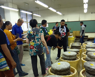 研修員の皆さんが目を輝かせた取り組みの一つは、この地に受け継がれている保存食で、福井県の有名な伝統食材であるサバのへしこを使った「なれずし」の継承活動です。廃校施設を活用し製造・販売も行うことで、活動費を捻出することにもつながっています。この活動を知った研修員は、東ティモールでは魚の保存といえば“干す“ことしか行われておらず、発酵保存という方法は考えもしなかったと話していました。その作り方、使う道具など細部にまで関心を示し、熱心にメモを取っていました。