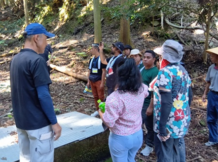 棚田の水源の管理について話を聞く研修員
