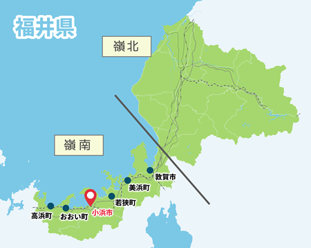 福井県では県の北部、南部を指し示す言葉として、嶺北(れいほく)、嶺南(れいなん)という言葉を使います。嶺南地域は、自治体でいうと敦賀市、小浜市、美浜町、高浜町、おおい町、若狭町を含む地域を指します。今回の研修ではこの嶺南の自治体のうち敦賀市・小浜市・若狭町で、地元の資源を生かした観光振興の取り組みを学びました。