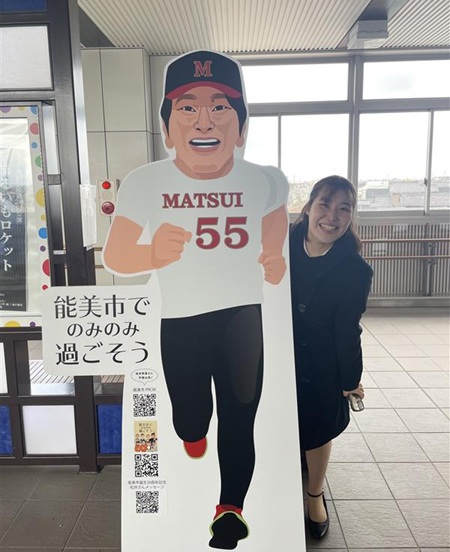 能美市国際交流協会訪問後に能美根上駅の松井秀樹さんと写真を撮りました!