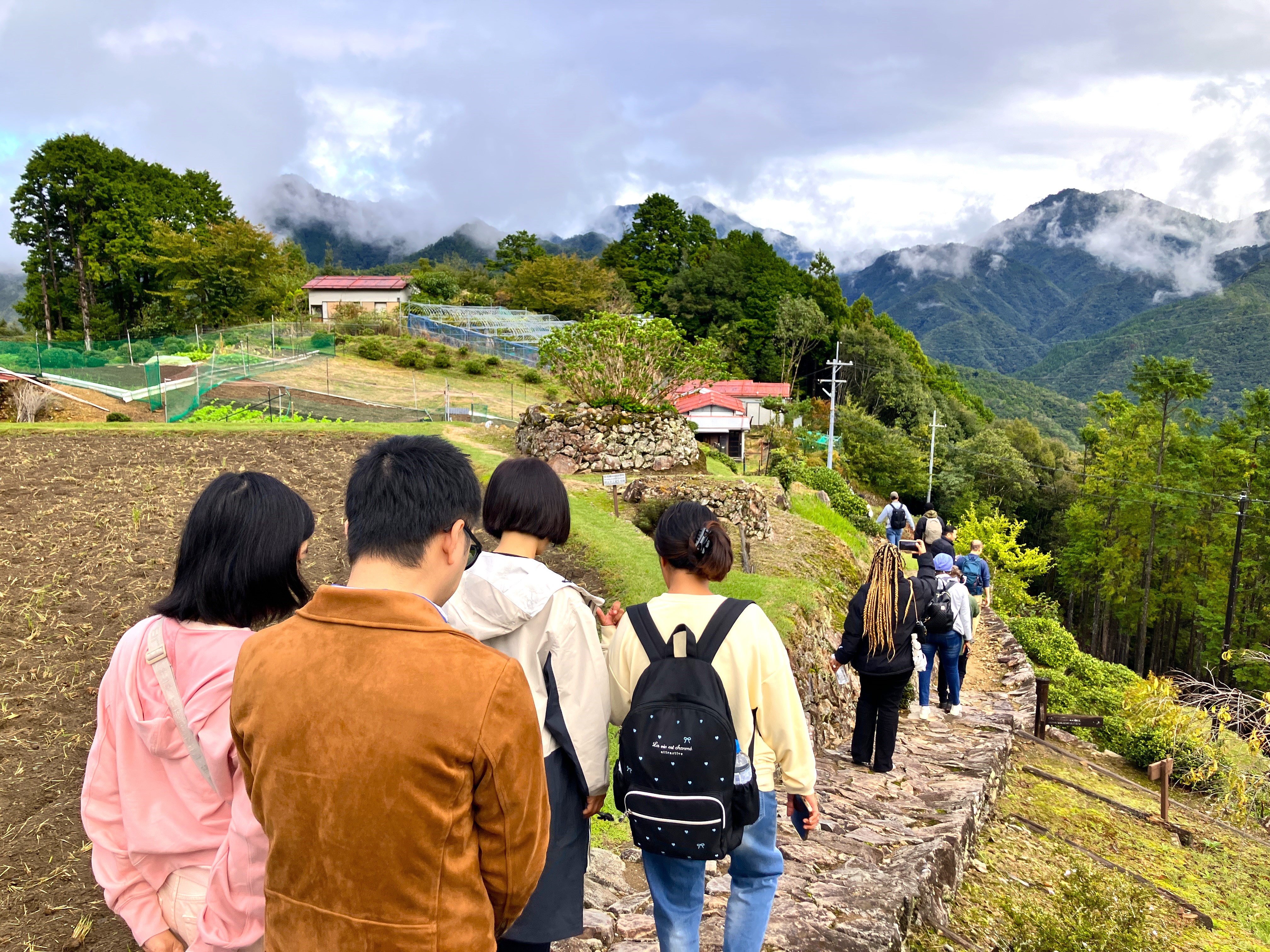 世界遺産である熊野古道が通る果無集落は「天空の郷」と呼ばれている小さな集落。訪れる人をもてなす水桶や花などを横目に、熊野古道小辺路を歩きながら自然・歴史・地域生活のつながりを体感しました。