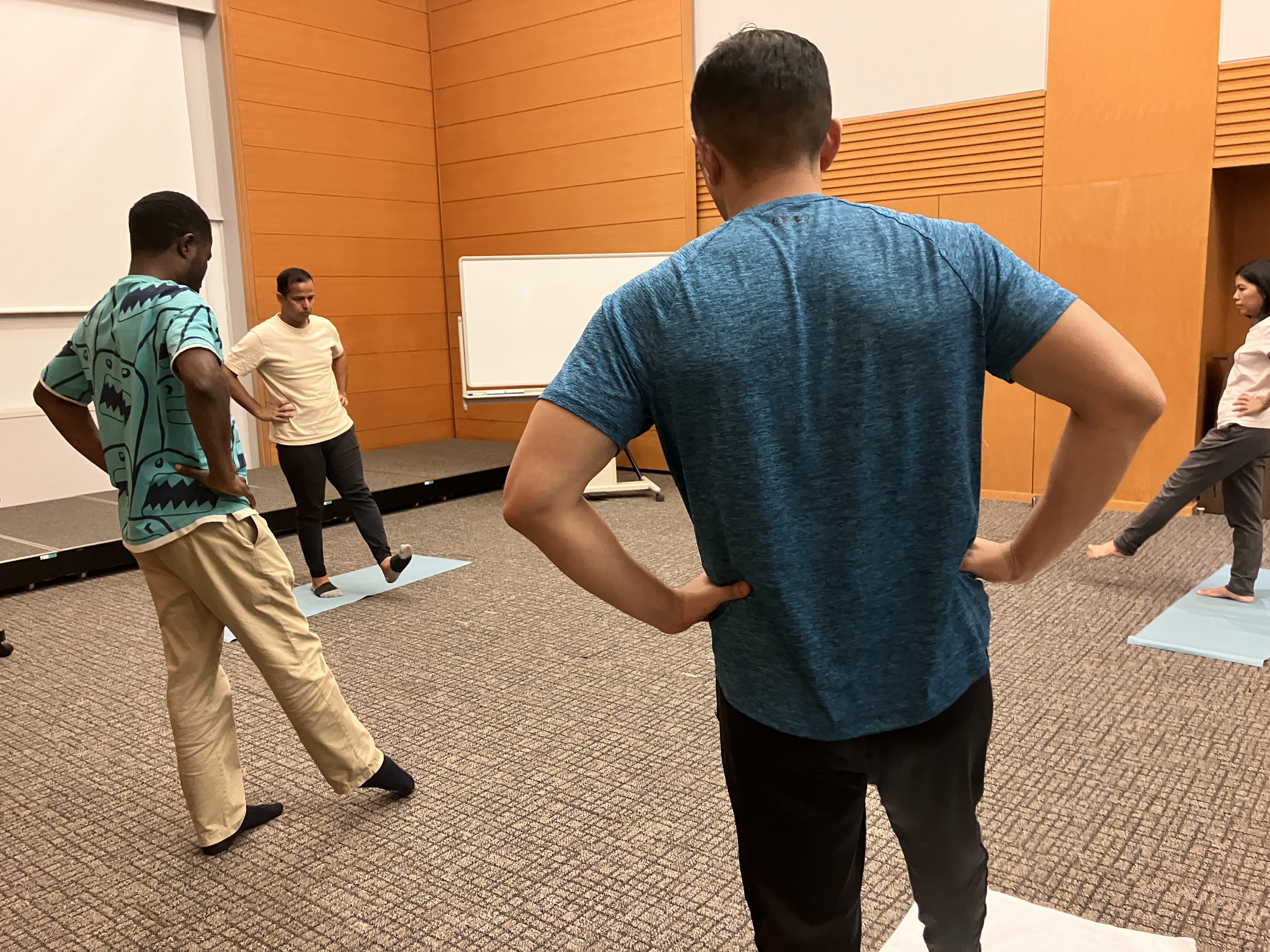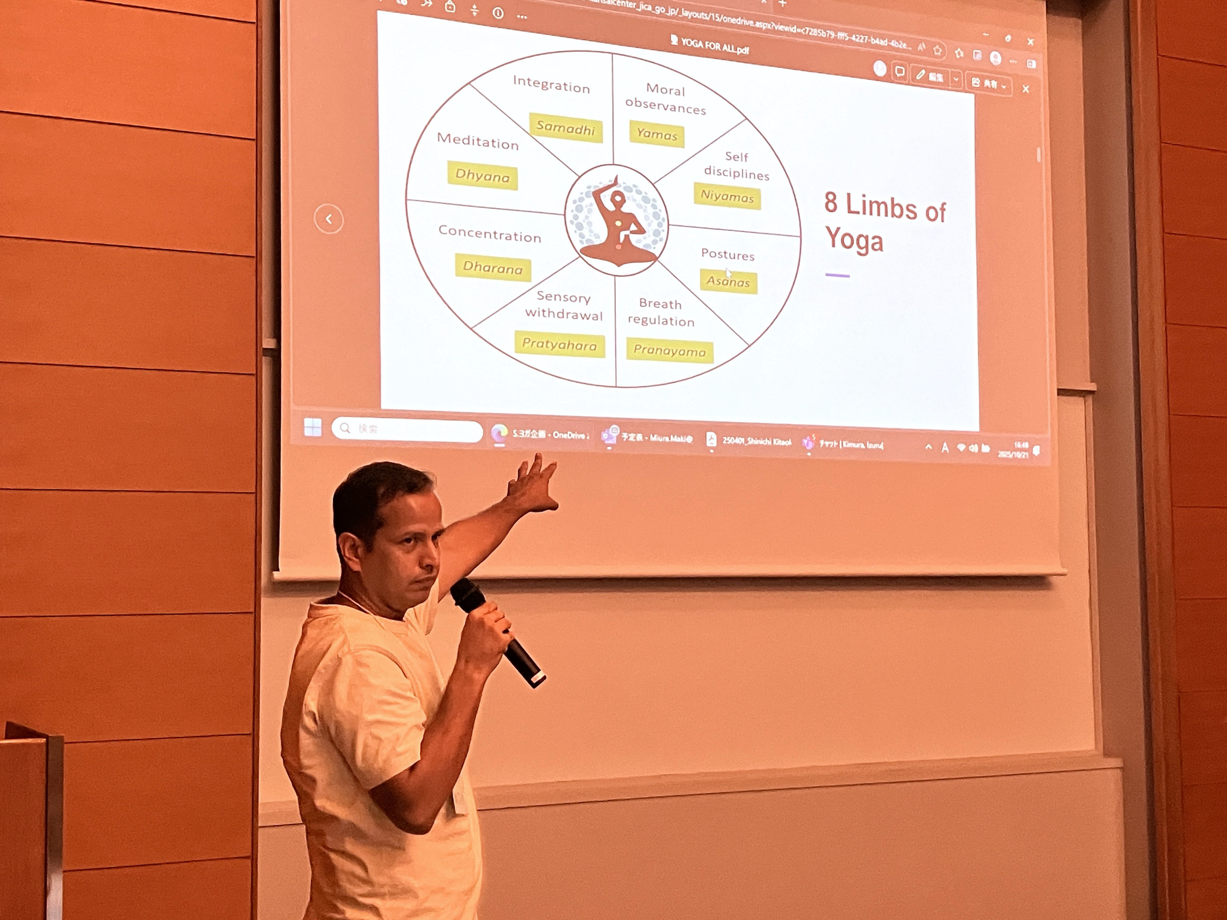 さらに、2024年度のプログラムで十津川村を訪問したネパール出身のJICA留学生(立命館大学)が提案した「自然と調和した健康増進(ヨガ)企画」を最終日に実施するため、参加留学生とヨガの練習を行いました。この企画は十津川村の雄大の自然を活かした観光客誘致を目的として提案され、最終日(10月24日)に村役場と協働で実施されました。