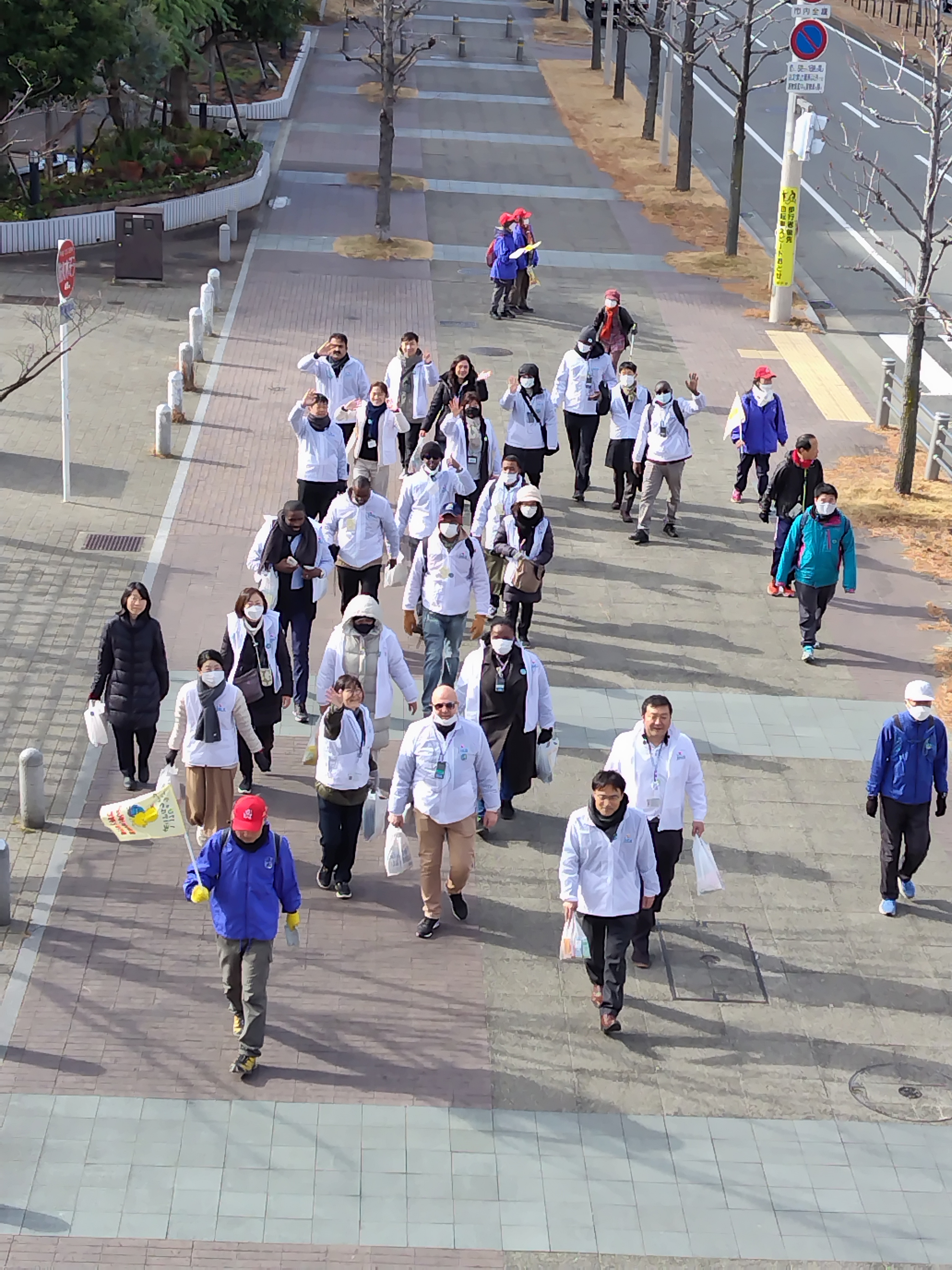 この時期に来日する防災分野の研修員は必ず本行事に参加しており、本来は遠い異国の出来事であるはずの震災を心に刻み、復興の道のりを偲びながら神戸の街を歩きます。