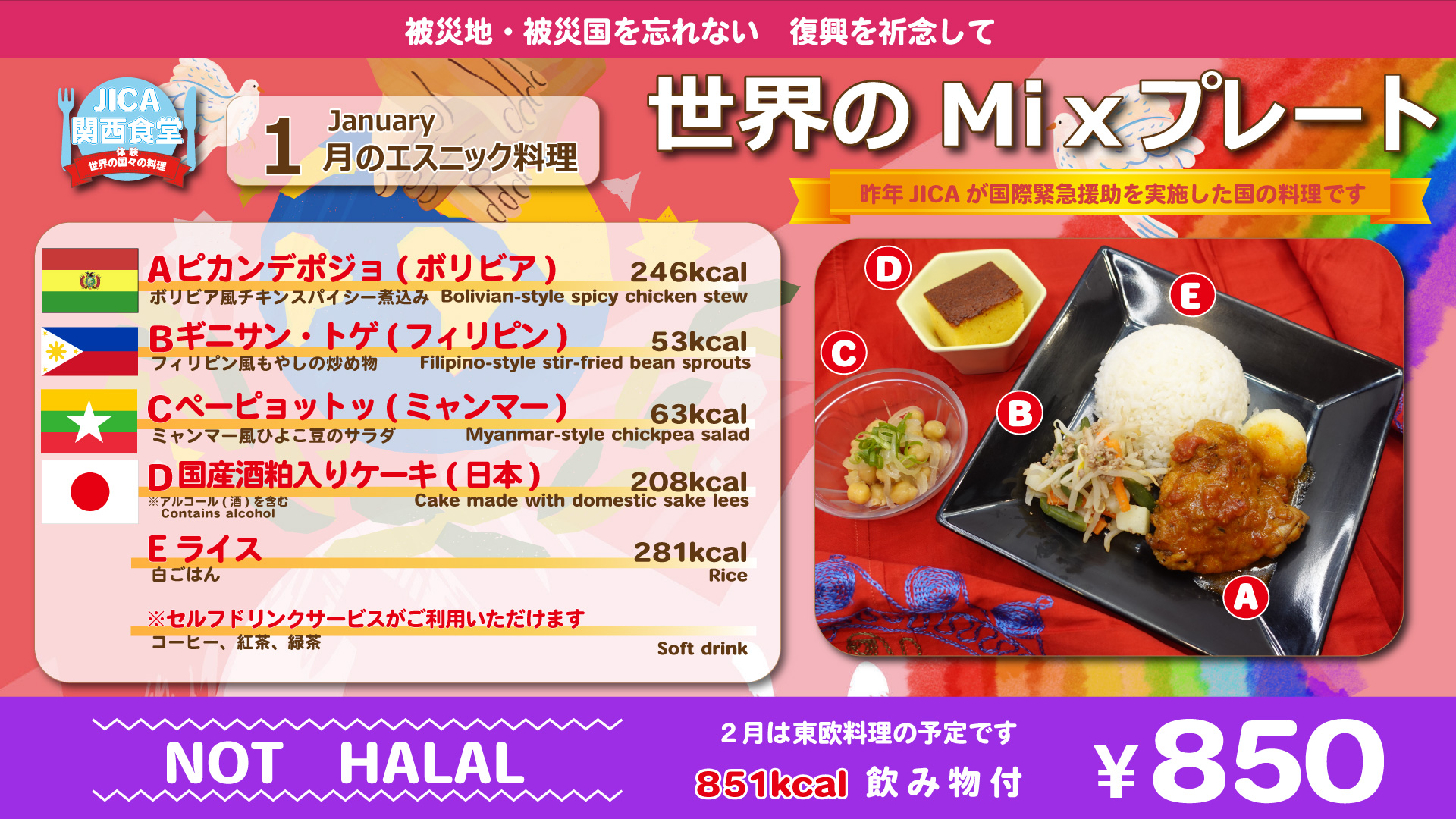 1月は2025年にJICAが国際緊急援助を行った国の中から、フィリピン(地震)、ボリビア(洪水)、ミャンマー(地震)をピックアップし、被災各国を忘れないよう「世界のMixプレート」をご提供します。