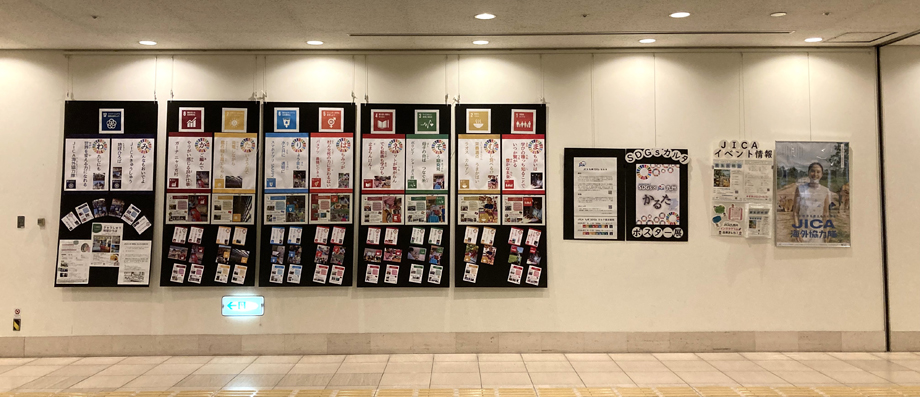 今回は、SDGs1番から8番と17番を展示しています。2月中旬から、SDGs 9番から17番までを展示する予定です。