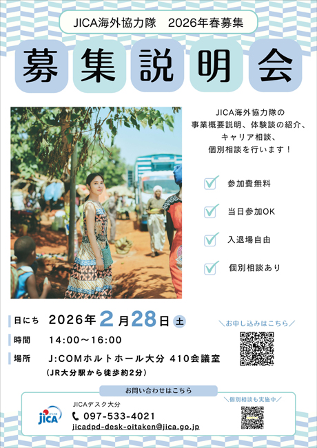 JICA海外協力隊2026年春募集説明会を大分県の下記の場所にて開催します!