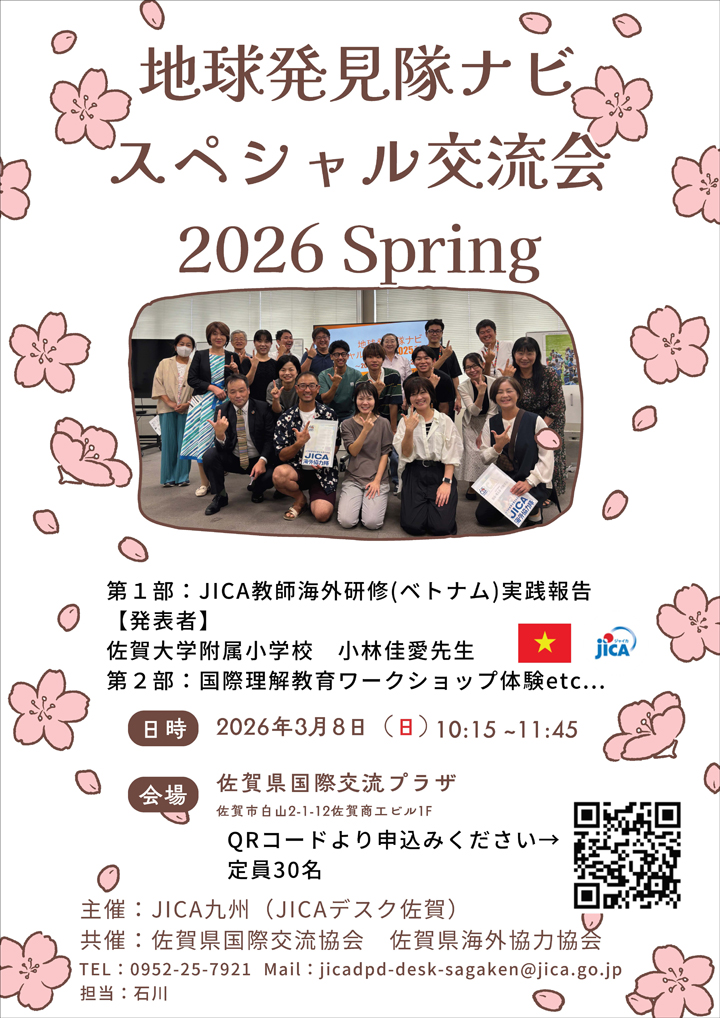 3/8(日)10:15~11:45に佐賀県国際交流プラザにて『地球発見隊ナビスペシャル交流会2026 Spring』を開催します。