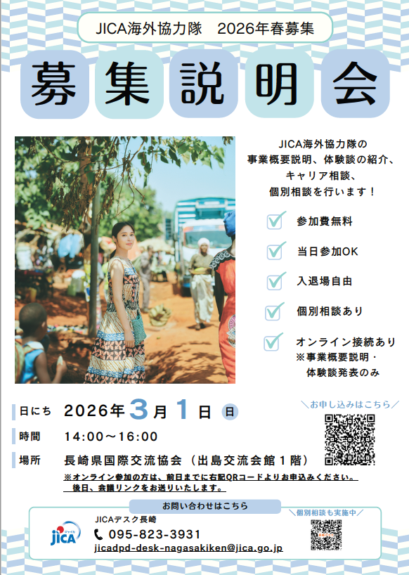 【長崎市】JICA海外協力隊「2026年春募集説明会」を開催します!