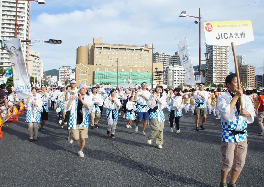 わっしょい百万夏まつりは、 JICA研修員にとっては国際交流や日本文化理解の場でもあり、北九州市の方々にとってはJICA九州を知る機会となっています。今年も、文化や言語、世代の違いを超えてつながりを体感した、思い出深い百万踊りとなりました!