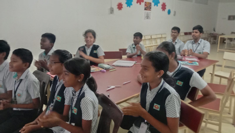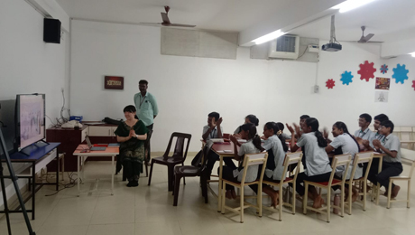 銭座小学校のみなさんは、事前に練習したタミル語で自己紹介!スリ・サンカラ学校のみなさんは自分たちの言葉(タミル語)で話してくれたことがとてもとても嬉しそうでした!