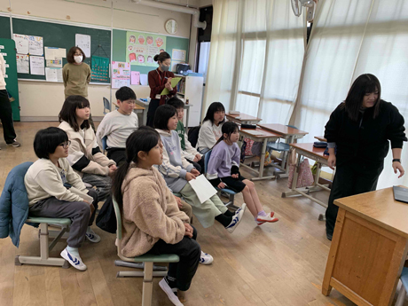交流会後半の質問タイムでは、「今何時ですか?」「学校は何時から始まりますか?」「宿題はどのくらいありますか?」「何のアニメが好きですか?」など、たくさんの質問が出ていました。、両校のみなさんの、「相手を知ろうとする気持ち・知りたいという気持ち」が伝わってきて、見ている方もとても心地がいい時間でした。