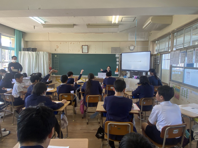 「フィジーについて何か知ってる人はいますか?」と生徒に尋ねる平川さん