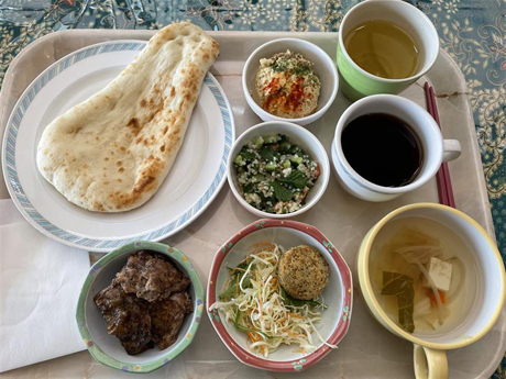 (パレスチナのパンも美味しいらしいのですが、今回はJICA九州のレストランで提供されている「ナン」と一緒に頂きました。)