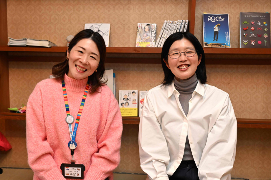 組織間連携について話し合うJICAデスク長崎の小田さん(左)とNCNの宮田