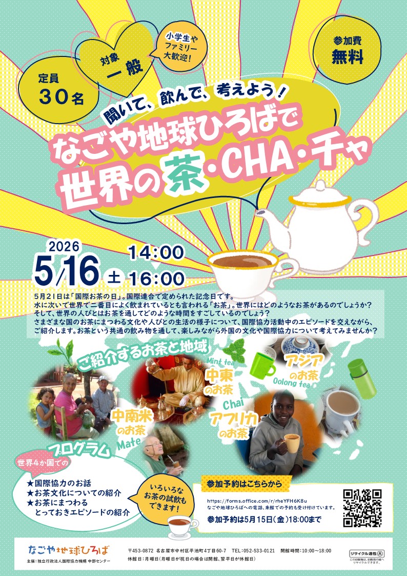 聞いて、飲んで、考えよう!なごや地球ひろばで世界の茶・CHA・チャ