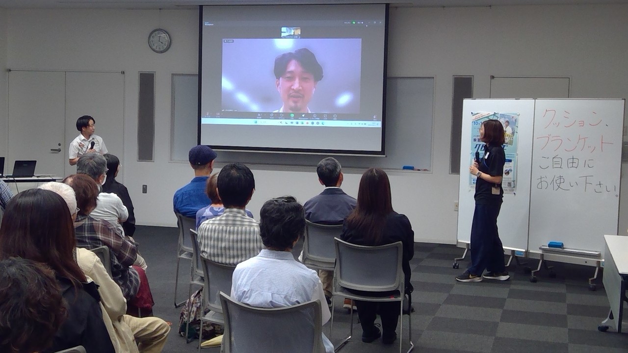 最後に、小倉さんとなごや地球ひろばの地球案内人によるトークセッションを行いました。訓練所は、福島県の二本松と長野県の駒ヶ根の2か所にあります。それぞれの訓練所で訓練を経験した二人から、訓練当時の思い出などを聞きました。トークセッションの中では参加者から笑いが起こる場面もあり、楽しみながら興味をもってトークを聞いていただけたようでした。トークセッションの最後に二人がそれぞれ訓練を通して得たことを熱く語り締めくくりました。