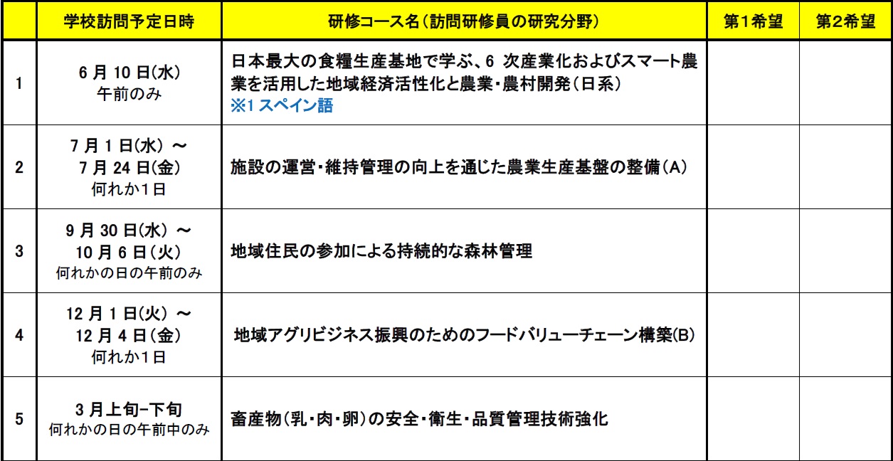1. プログラム作成にあたっては、児童・生徒による事前学習の発表の場となるだけでなく、来訪する研修員も参加できるプログラムとなるようご留意ください。