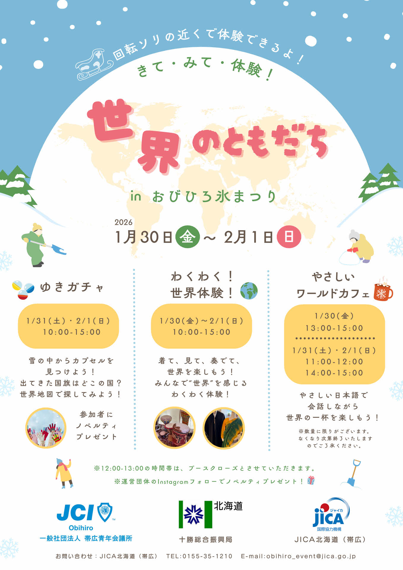 寒い帯広の屋外で楽しみながら世界に触れる機会にしてください!!