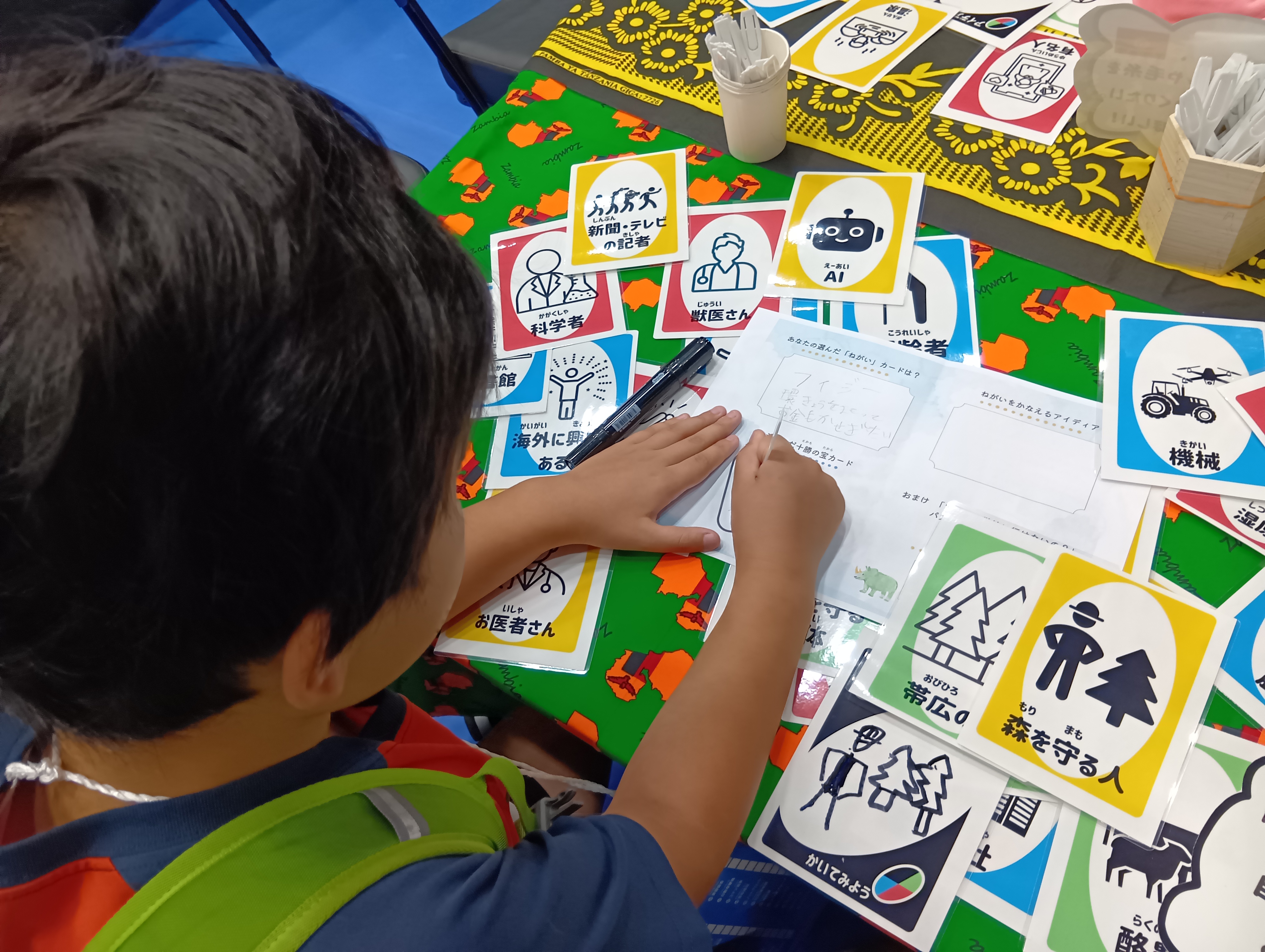 ワークショップでは、「十勝の牛乳を世界の子どもに届けたい」「太陽光の力で水を作ればいい!」など、子どもらしい柔軟な発想やユニークなアイデアが数多く飛び出しました。参加した子どもたちは真剣に考えながらも楽しそうに取り組み、カードを前に熱心に意見を交わす姿が印象的でした。