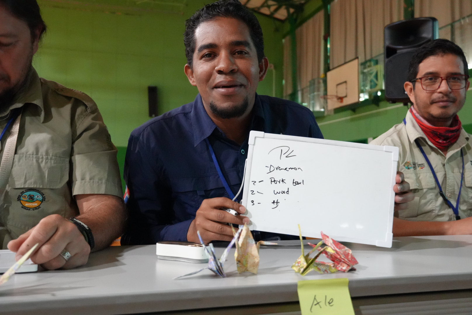 優勝者は全問正解のアレさん(ドミニカ共和国)とフェルさん(コスタリカ)。賞品として日本で人気のお菓子をもらい、休憩時間には研修員、生徒の皆さんと仲良く分けて食べていました。