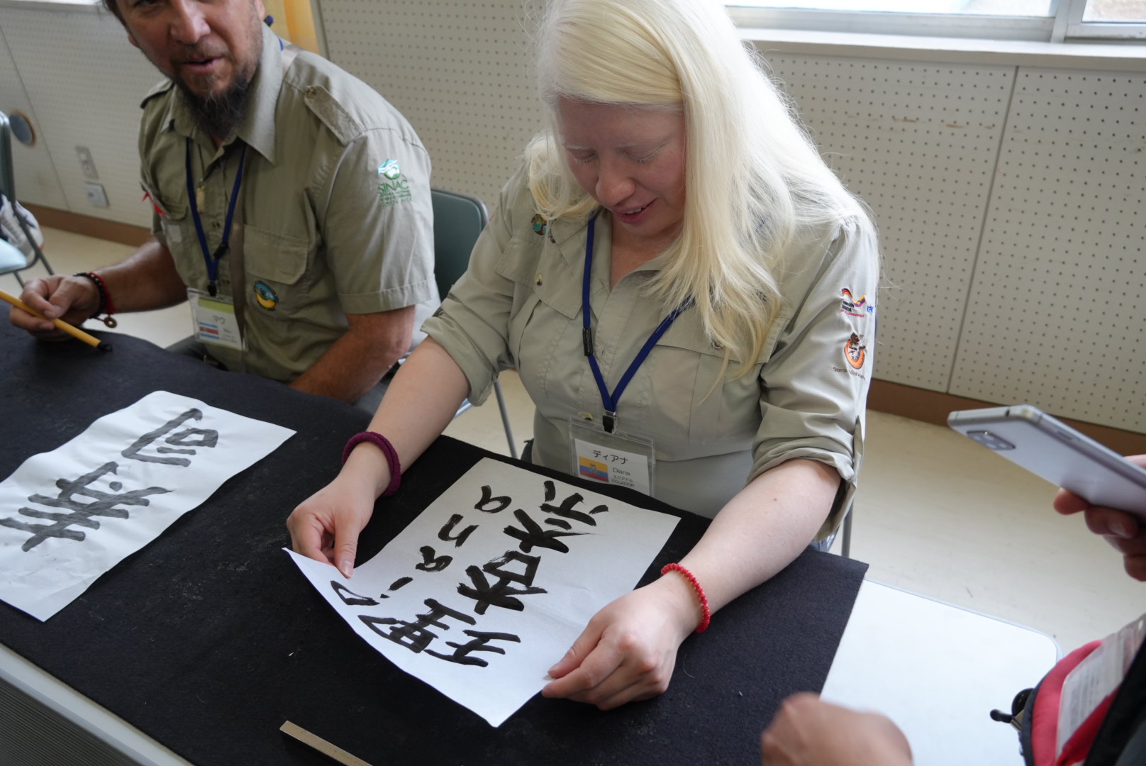 書道体験ブースでは、「寿司」や研修員それぞれの名前を漢字で書き、生徒から「思っていたよりも上手でびっくりした」との声があがっていました。