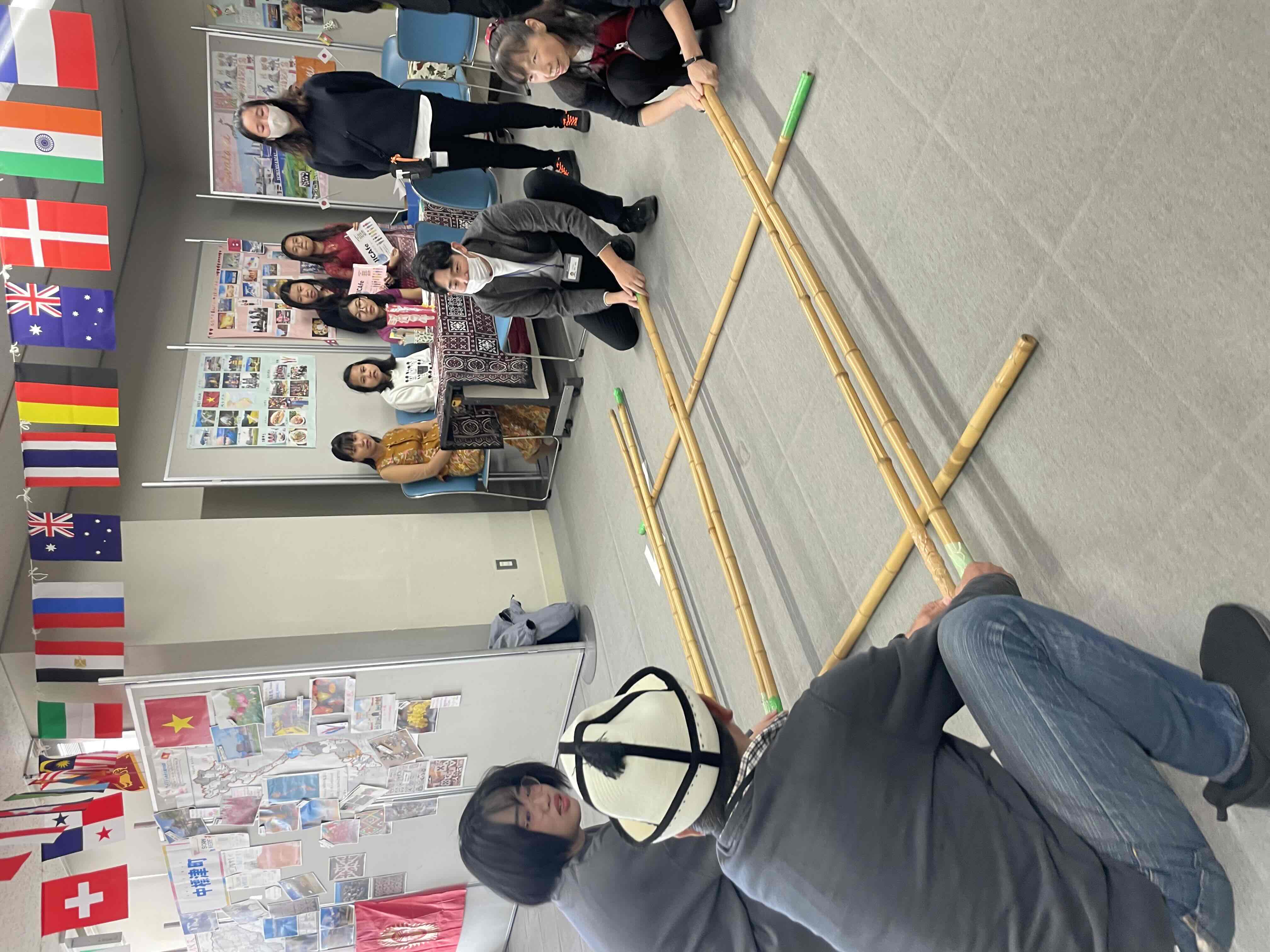 中標津町ブースでは中標津町国際交流員によるキルギスとベトナムの文化模様のぬりえや、屋外ではキルギスの骨当てゲーム「オルド」やベトナムの竹飛び遊び「ニャイサップ」を実施。子供も大人も体を動かし、夢中で遊ぶ姿がありました。
