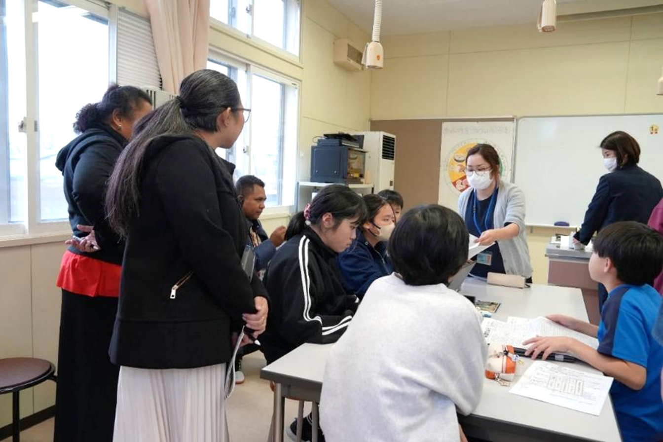2025年12月3日、「母子栄養改善コース」の研修で5か国から来日していた研修員5名が帯広市立愛国小学校に訪問し、全校児童22名と交流や食育指導の視察などを行いました。