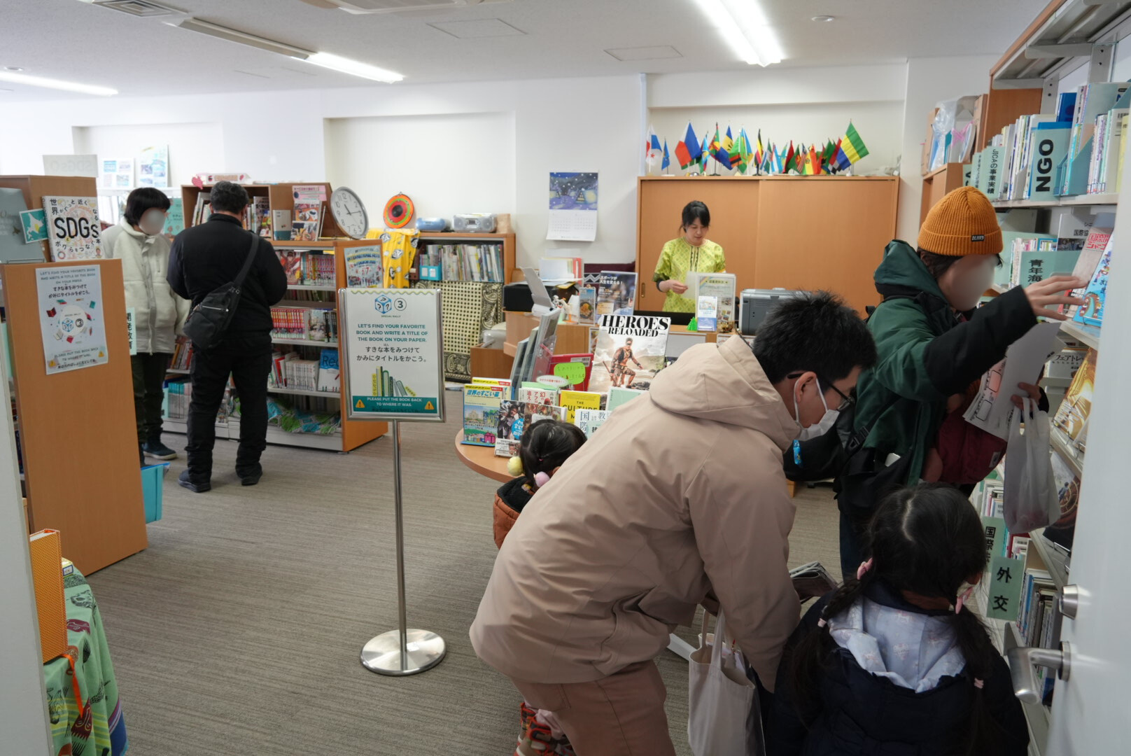森の交流館・十勝とJICA北海道(帯広)をまわってチェックポイントを探し、世界から届いた景品をゲットできるこのコーナーでは、お子さまを中心にたくさんの方々にチャレンジしていただきました。