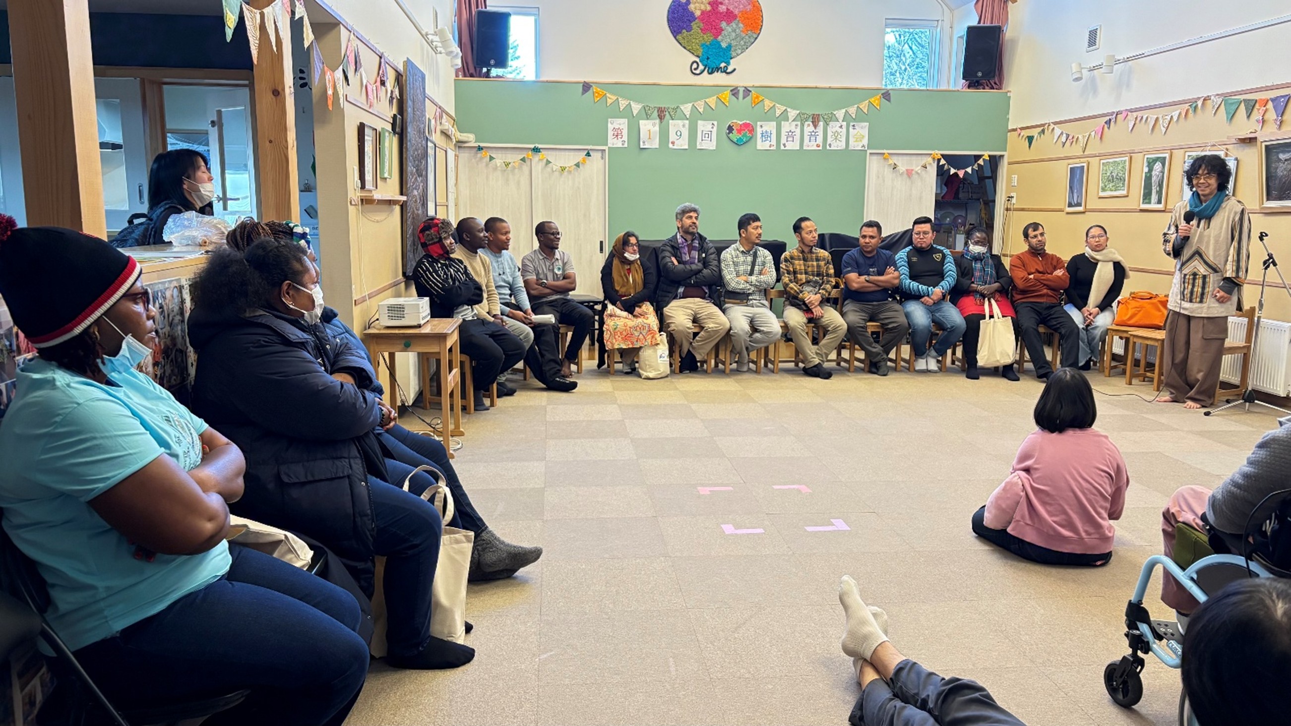 2025年11月29日(土)、母子栄養改善や地熱掘削技術を学ぶため様々な国から来日しているJICA研修員が児童デイサービス「音楽セラピー樹音」を訪問し、施設の皆さんと交流しました。