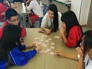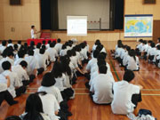 国際理解ワークショップ ・「もしも世界が100人の村だったら」 世界の現状を疑似体験という参加型の方法で体験することがねらいである。世界には、多様な言語や文化を持つ人びとが住んでおり、そこには大きな貧富の格差があることを体験的に学び、私たちが暮らす日本は世界のどこに位置するかを考える。 |