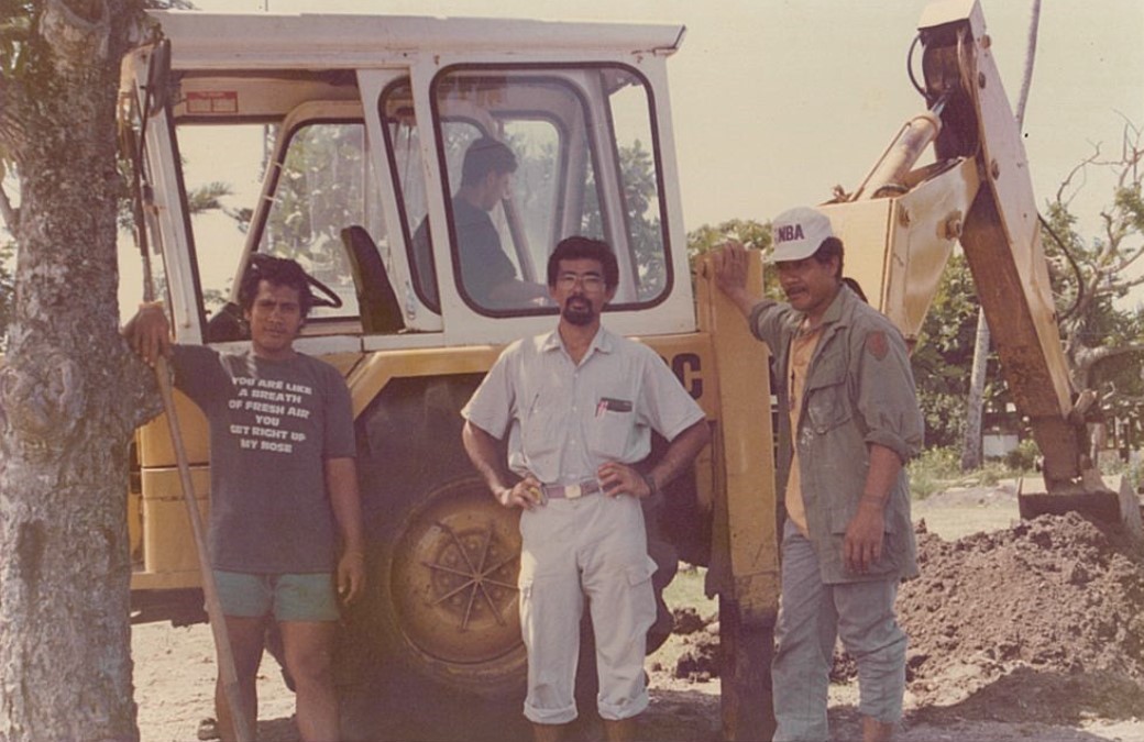 「大きくなったら南の島に行く」。金城さんのこの夢は、戦前、日本の占領下にあったサイパンに移民していた母から聞いた南洋諸島 の話がきっかけでした。高校生の時に『我ら青年海外協力隊』という本に出会ったことでJICA海外協力隊への参加の検討を始め、大学では土木工学を専攻します。卒業後は、大阪のゼネコンでダム建設や発電所施設工事に従事し、5年後に名護市の技術職員として再就職しました。合計9年の実務経験で培った技術と、土木施工管理技士の資格を取得したことで、協力隊参加への準備が整いました。31歳で応募し、念願だった南の島へ土木施工隊員として派遣されることになりました。