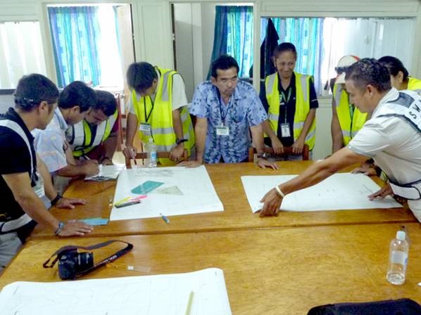 管路図素図作成などの指導を行う金城さん(左から5人目)