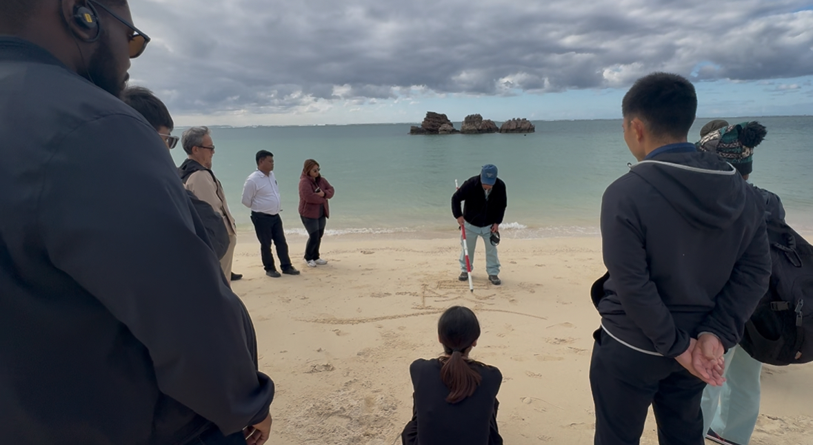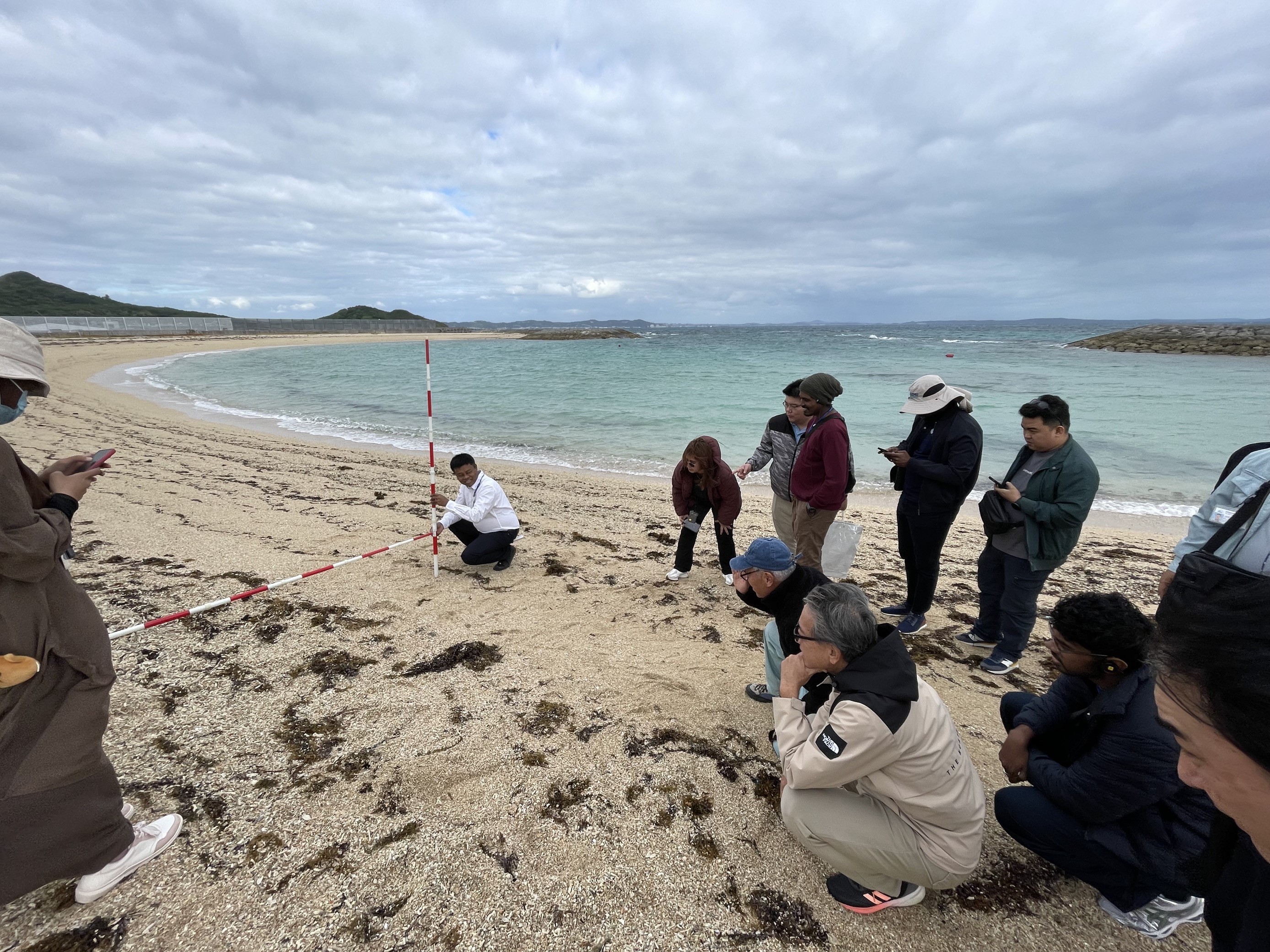 12月11日より始まった本コースでは、講義とともに沖縄本島、宮古島、静岡、神奈川と17の海岸での実習を行いました。現場実習では、講師陣からの丁寧な説明のもと、海岸での計測や風や潮の流れの観察、研修員間の活発な意見交換を行いながら、それぞれの海岸形成の特徴にあわせた護岸、海岸保全を講じる重要性を学びました。