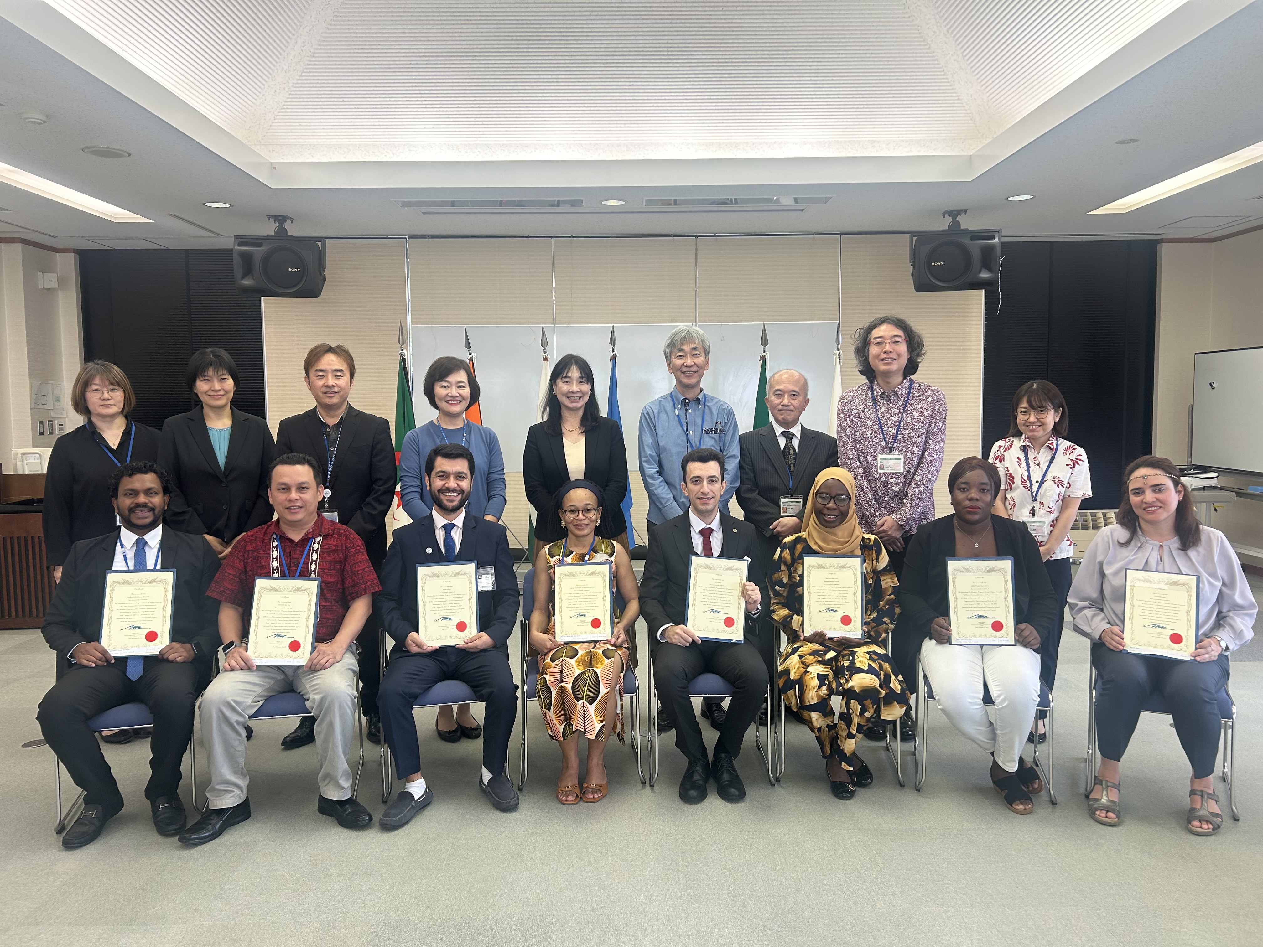 課題別研修「ICT実践力強化のためのコア技術人材育成(A)」の閉講式が12月19日に行われ、6か国から参加した8名の研修員が無事にコースを修了しました。