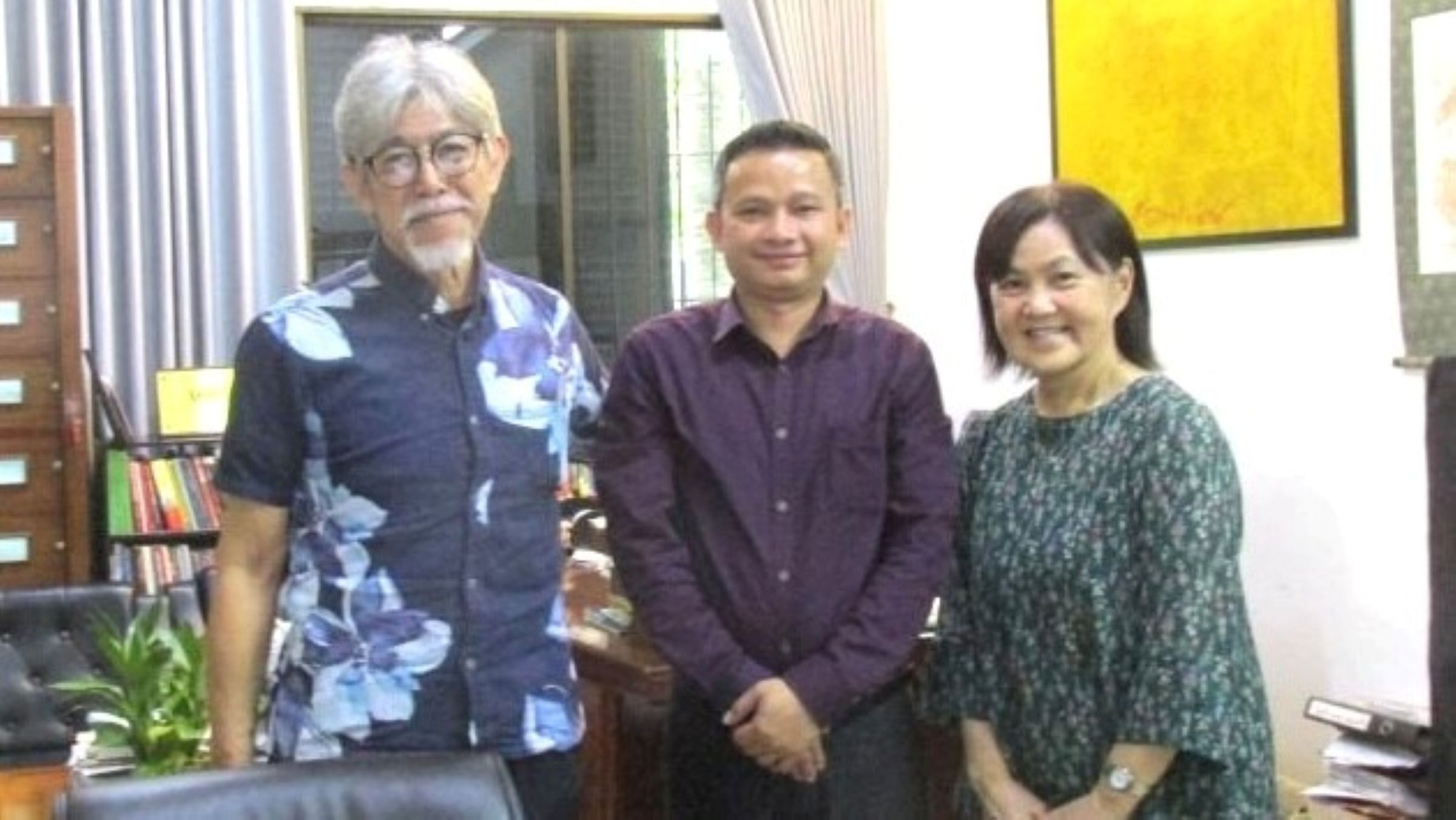 その中で今回は、カンボジアにおける平和博物館の人材育成プロジェクト「地雷対策を通した平和と人間の安全保障の啓発・普及のための博物館づくり」について取り上げます。プロジェクトを実施している特定非営利活動法人沖縄平和協力センター(OPAC)理事長の仲泊和枝さんと、長年沖縄県立博物館・美術館(おきみゅー)や平和祈念資料館の展示企画や文化財調査に携わってきた、沖縄県文化協会事務局長の園原謙さんにインターン生がお話を伺いました。