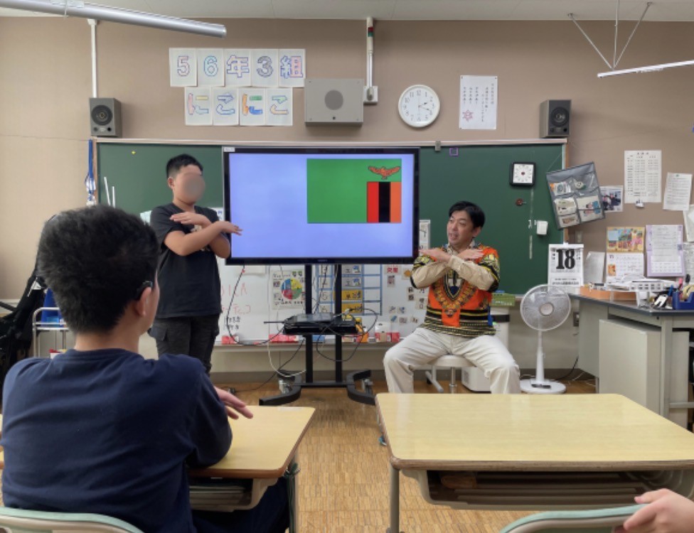 私が勤務する学校では、日本とザンビアの文化的な違いに興味をもてるよう、カラスの種類やスーパー、ケンタッキーの店内など、両国の生活に関する写真を用意し、「どっちがザンビア?どっちが日本?」というクイズ形式で紹介しました。子どもたちは写真の違いに驚きながら、楽しんで学ぶ姿が見られました。さらに、ザンビアの聴覚障害の子どもたちが手話で授業を受けている写真を提示すると、日本の子どもたちは「同じだ!」と共通点に気づき、ぐっと親近感を深めていました。