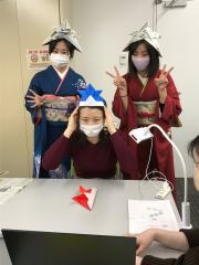 端午の節句の紹介の後、リモート折り紙づくりを行いました。研修員も新聞紙などを用意して端午の節句や侍を象徴する“兜”をつくりました。遠隔での折り紙教室でしたが、皆さんとてもすてきな兜ができていました!