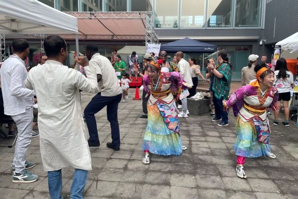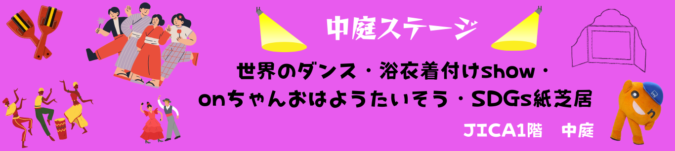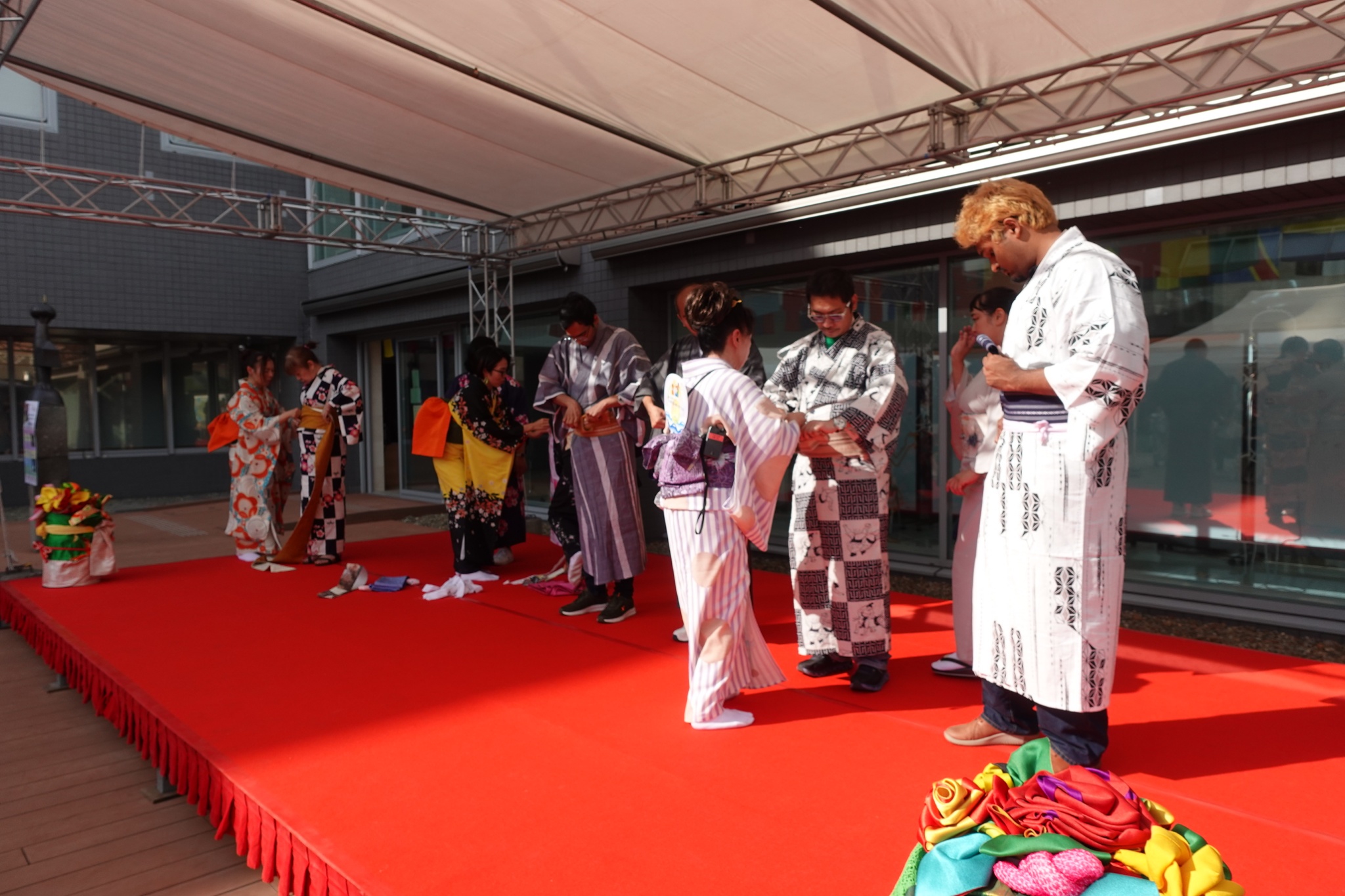YOSAKOIソーラン、サンバダンス、世界のダンスを踊ろうでは、JICA研修員や来場した大人も子どもも一緒に踊って大盛り上がり。着付けショーでは、一般の方やJICA研修員がステージ上で自分で浴衣を着てみるという、着付けのデモンストレーションが行われました。国籍や年齢を越えた国際交流の輪が生まれた中庭ステージ、パフォーマンスを披露してくれた皆さん、参加してくれた皆さん、ありがとうございました!