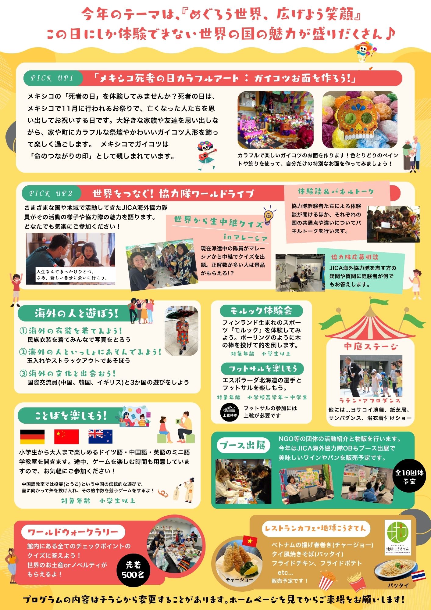 JICA北海道・札幌市・札幌国際交流館の三者共催で、さらに北海道、(公財)札幌国際プラザ、札幌姉妹都市協会、出入国在留管理庁、北海道テレビ放送株式会社、その他NGO等の外部団体という多彩な皆様のご協力のもとでイベントを運営しました。