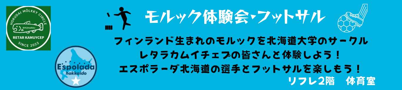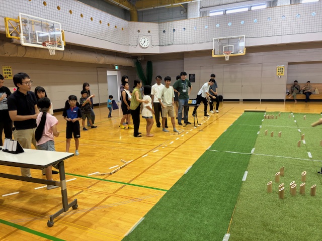 北海道大学モルックサークル(レタラカムイチェプ)の学生3名によるフィンランド生まれのスポーツ「モルック」を行いました。モルックを始めて経験される方はサークル生の解説付のレーンにて実施、また慣れている方は試合形式で行ない、多くの皆様が楽しまれておりました。