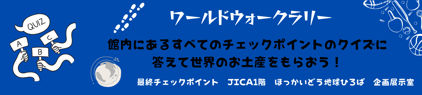 毎年恒例の、会場内に掲示された世界のクイズに答えると世界のお土産がもらえる人気企画を今年も開催しました。先着500名の参加者がヒントを頼りに楽しく挑戦し、ゴールにたどり着いた方には、世界各国のお土産を景品としてお渡ししました。珍しい品も多く、色とりどりのキーホルダーや民芸品、本、絵など、国や文化の個性が感じられるバラエティ豊かな品々が並び、子どもから大人まで楽しそうに選ぶ姿が見られました。終始盛況で、毎年参加してくださる常連の方々にも多くご参加いただきました。