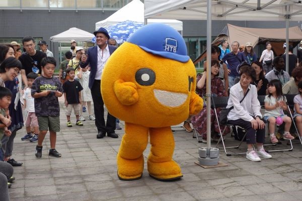 HTBの人気キャラクター「onちゃん」が、会場内を周遊し、子どもから大人まで多くの参加者に笑顔を届けてくれました。中庭や館内を歩くonちゃんのまわりには、記念撮影を楽しむ親子や、手を振って声をかける人たちが集まり、会場全体がやさしく温かな空気に包まれました。