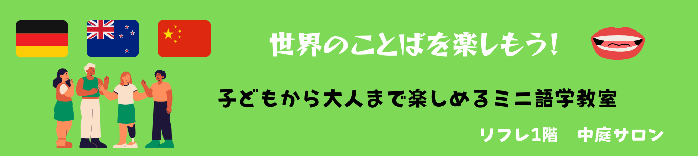 中庭サロンでは、ドイツ語講座、英語講座、中国語講座の3つの語学プログラムを実施しました。各講座では、あいさつや簡単な日常会話に加え、言語ごとの動物の鳴き声の表現の違いなど、文化的な側面にも触れながら参加者の皆さんに学んでいただきました。特に中国語講座では、中国の伝統的な遊び「投壺(とうこ)」の体験コーナーも設けられ、参加者は言語学習とあわせて中国文化に親しむことができました。どの講座も年齢や国籍を問わず幅広い世代の方々に楽しんでいただける内容となっており、ご参加いただいた皆様からは「楽しく学べた」といった声が多く寄せられ、大変好評をいただきました。