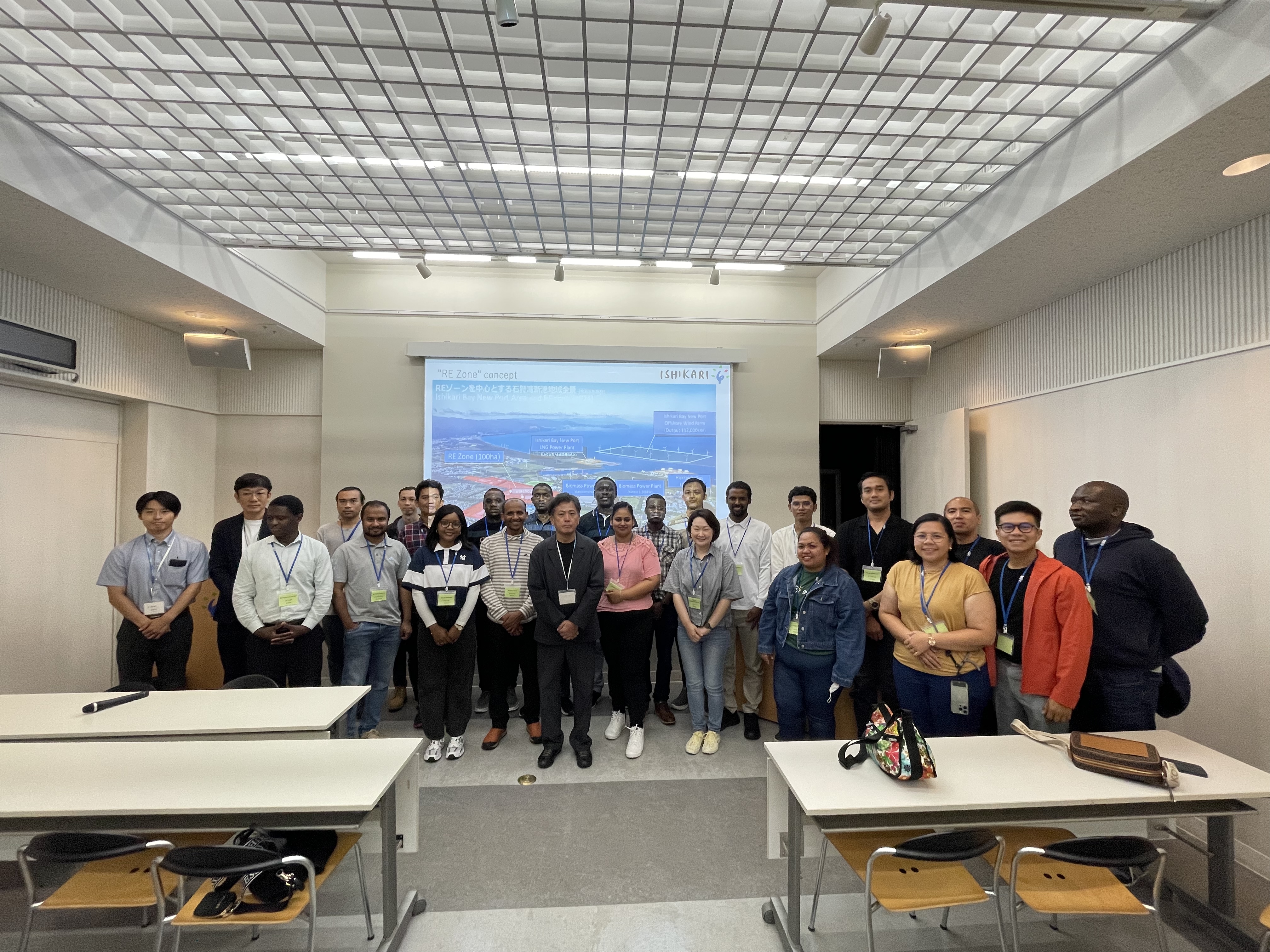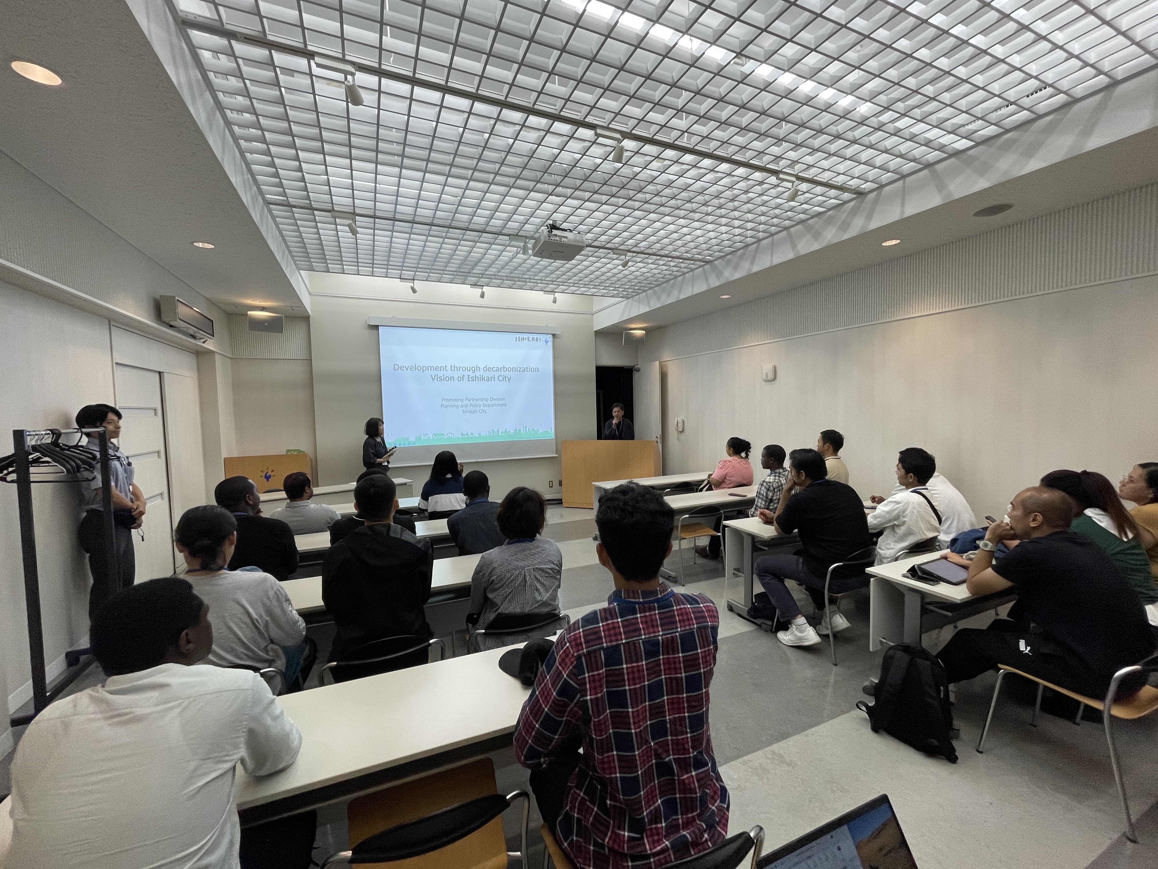 今回留学生が石狩市を訪れたのは、そうした開発を進める中で「脱炭素先行地域[1]」として、市内の新港地域に複数の再生エネルギー(以下、再エネ)電源を集積させた街づくりについて詳しい話を聞くためでしたが、石狩市役所の担当者からは、豊富な情報と、普段聞くことがないような最新事例をご説明いただきました。