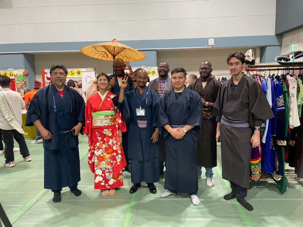 自己紹介の後は、JICAブースの隣にあった着付けブースで着物を着せていただきました。最初は見守っていた研修員もいましたが、周りの方々に勧められ最終的には全員が着物を着ることに。来日間もない研修員でしたが、日本での素敵な思い出になったことと思います。