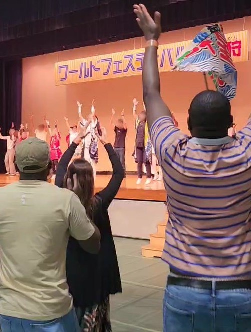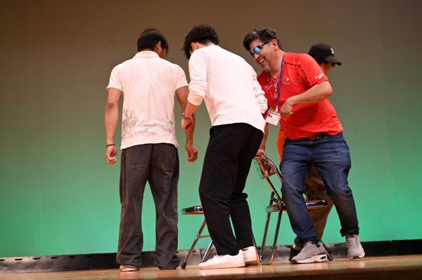 チリとマラウイからの研修員は、ステージでの椅子取りゲームにも参加しました。チリにも同じようなゲームがあるそうで、フェイントをかけて他の参加者を紛らわすなど、見ているこちらもとても楽しかったです。