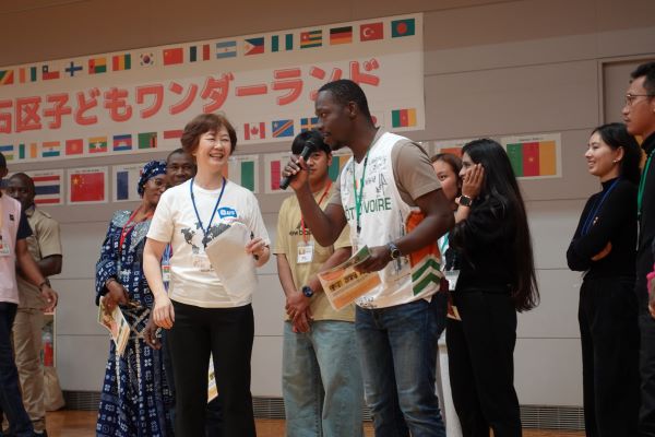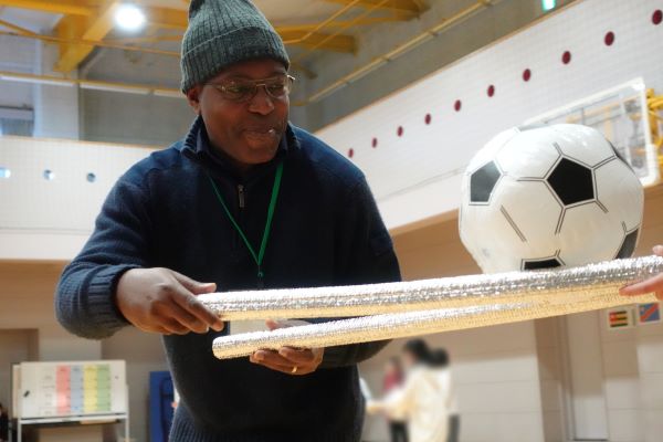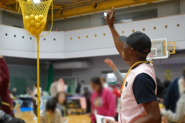 日本語がわかる留学生や技能実習生に比べ、JICAの研修員は日本での滞在期間が短く、わかる日本語は自己紹介や挨拶程度です。そのため、言葉を介しての交流は難しいのですが、このような小学生と外国人が遊びを通して交流するイベントを楽しみ、感動を伝えてくれた研修員もいました。自国で子どものバスケットボールチームに関わっているという研修員は、自国の子どもたちと今回のゲームをやりたいと話しました。また、参加した外国人の中にはフランス語を話す留学生もいて、外国人参加者同士が交流する様子も伺えました。