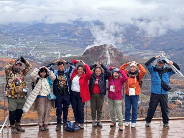 2025年11月8日~10日にかけて3名の参加者は有珠山周辺にて洞爺湖有珠火山マイスターが実施している活動について、実践現場の見学及び活動を紹介を通して学び、お互いの地域の課題について議論しました。住民主体の防災の取り組み、子ども向けの防災教育、不法登山者への対策等について理解を深め、コスタリカでの火山防災活動・啓発活動にどのように活かせるか検討しました。