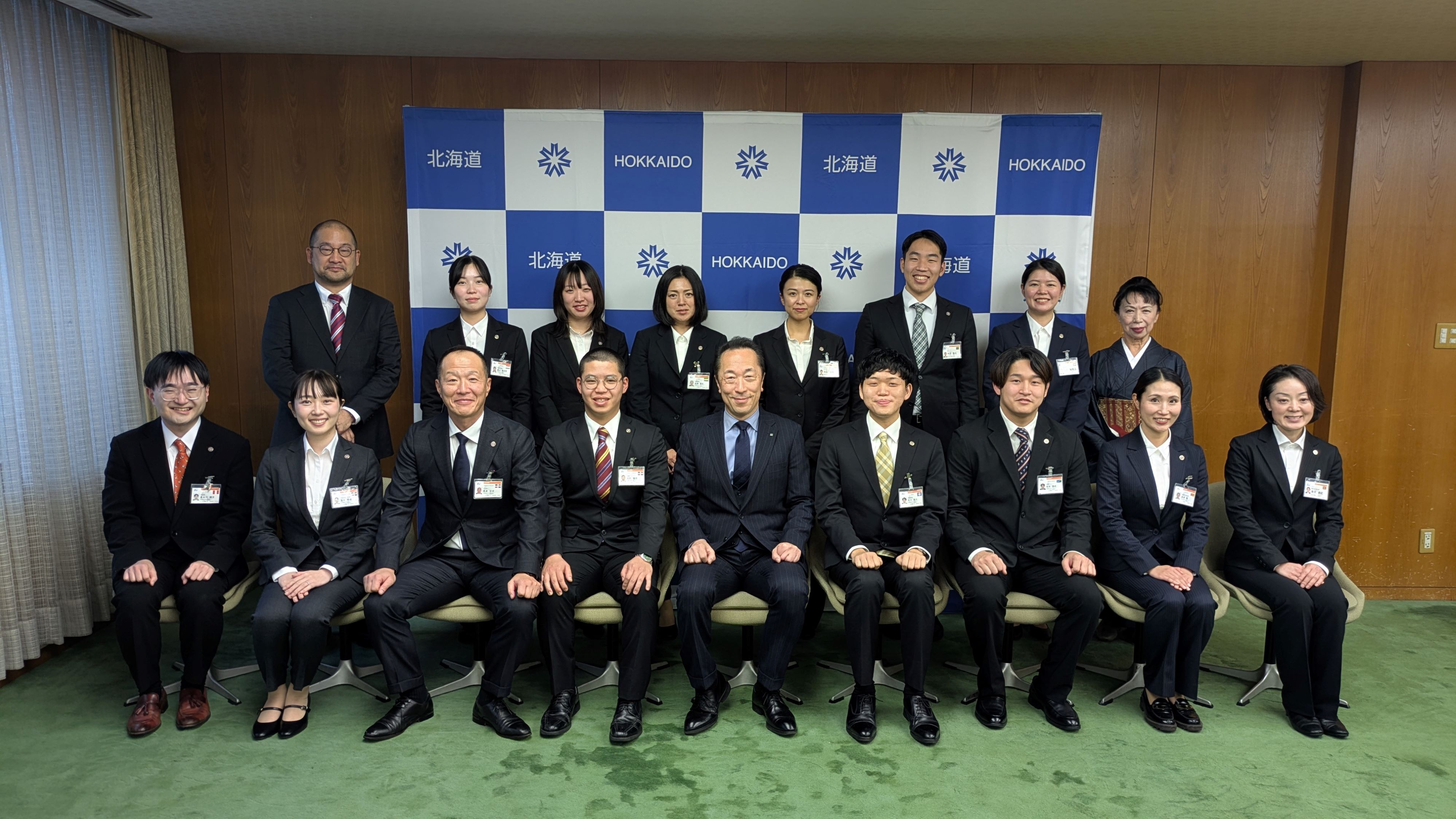 北海道に縁のある、2025年度2次隊の隊員14名が、2025年12月上旬から2026年1月中旬の各国派遣前に、12月4日(木)北海道庁を表敬訪問し、濱坂副知事に出発前のご挨拶を行いました。